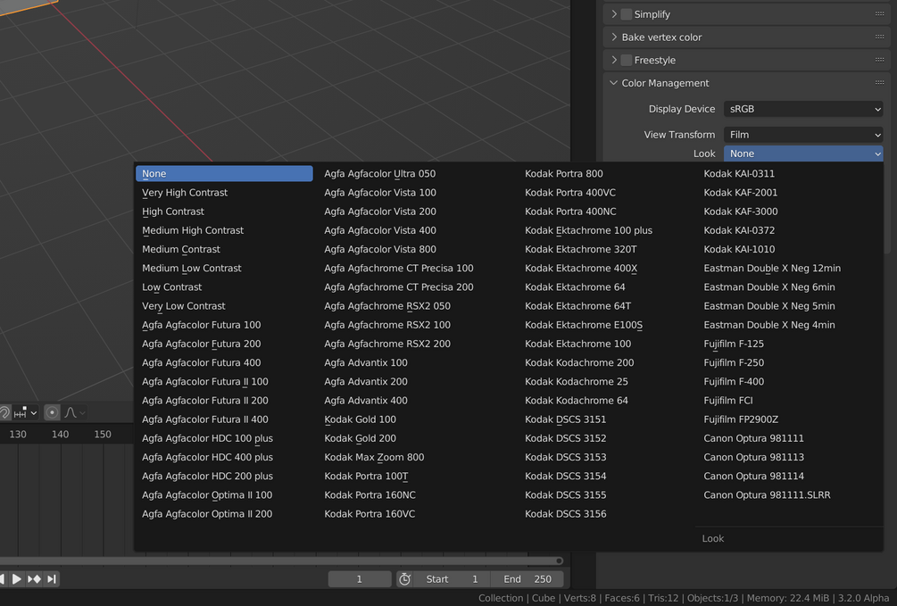 Film camera preset and camera LUTS for blender 2.8-2.92 and 3.2+.